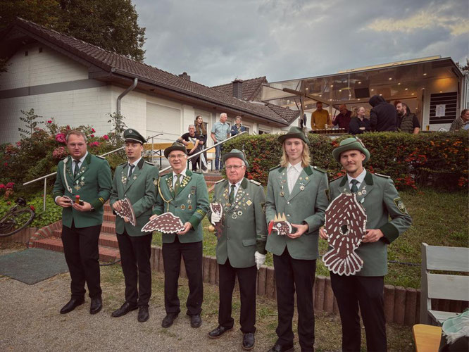 Beim Vogelschießen holte Stephan Döhrn den Kopf von der Stange, der linke Flügel wurde von Kerstin Krebber runter geschossen und den rechten Flügel errang Henning Grans. Beim anschließenden Königsschießen um die Königswürde hatte Melanie Hübers das Glück auf Ihrer Seite und holte mit dem 305 Schuss den Rumpf des Vogel von der Stange undsicherte sich damit den Titel der Tageskönigin. Zum Tageskönig nahm sie Andreas Gockel. Auch die Jugend des Vereins schoss einen neuen Kinderkönig oder Kinderkönigin aus. Den Kopf des Vogels holte sich Romina Rockhoff, der rechte Flügel ging an Florian Schneider und der linke Flügel an Felix Bleckmann. Anschließend wurde auf den Rumpf des Vogels und damit um die Königswürde geschossen. Diese errang schließlich Kiara Hübers mit dem 169 Schuss. Zu Ihrem König nahm sie Maik Heßelmann
